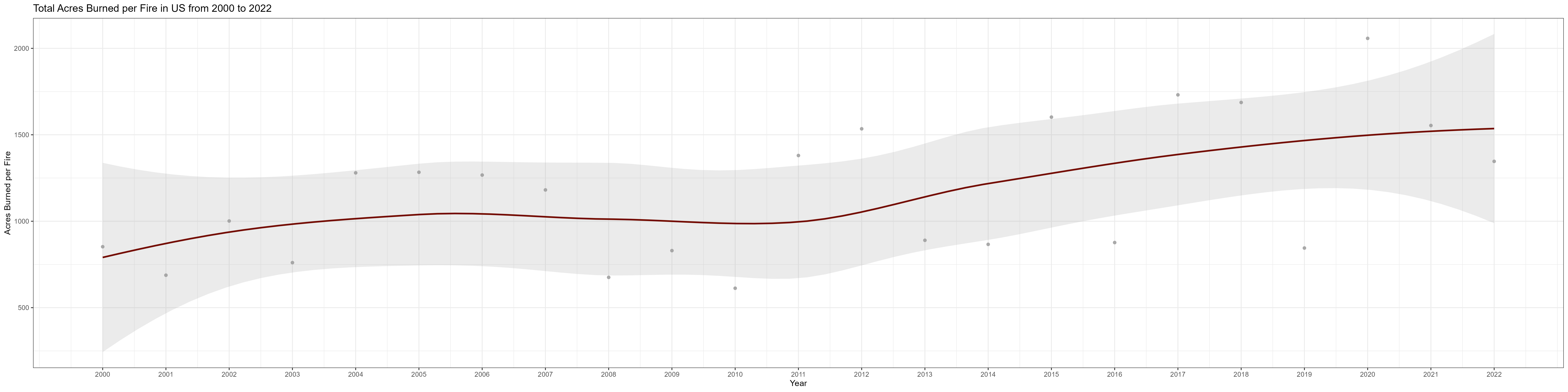 Total Acres Burned per Fire in the US – years 2000 to 2022