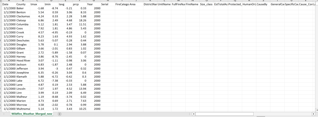 Weather Data: Weather data was obtained from NOAA and merged with the wildfire data using ‘County’ and ‘Date’ as the common identifiers.