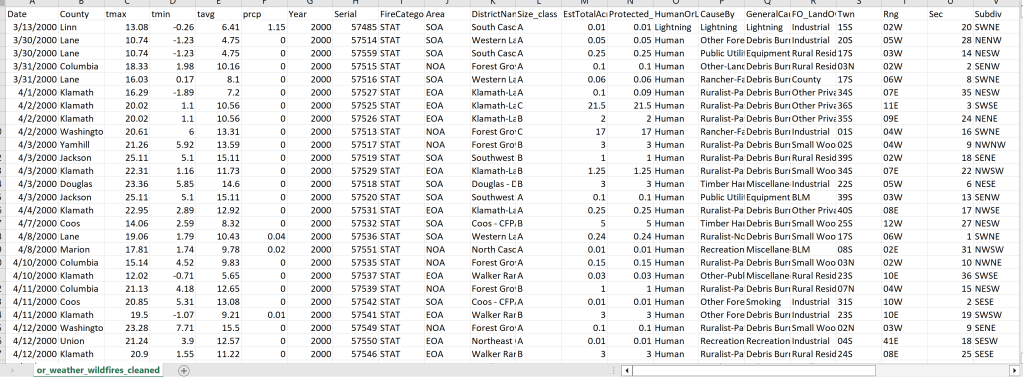 Oregon Wildfire and Weather Data (2000 – 2022) – kaggle