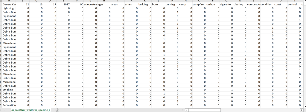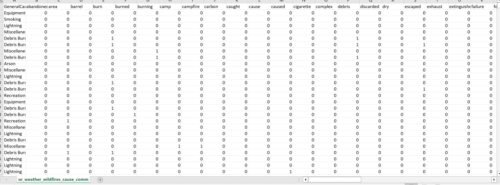Oregon Wildfire and Weather Cause Comments Vectorized